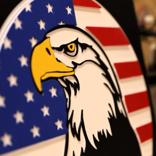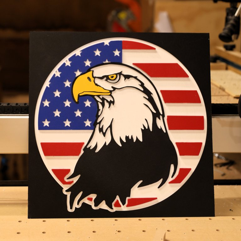 For my birthday, my parents tried to buy me a kit from CIC Workshop to make an American Flag Eagle sign. The kit was out of stock so that set me on my path of making the American flag in the shape of the United States and then the Martin Luther College sign. As I was ordering a bit more material to make that MLC sign, I realized that the original eagle kit was back in stock so I picked that up.