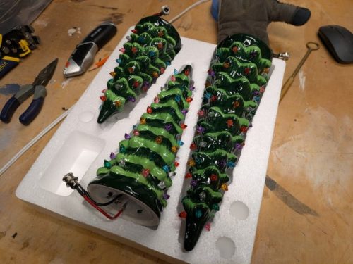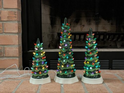 Thankfully the trees still work after this adventure and I’m excited to set them up next year. They will get plugged into the same setup and go on/off with the timer that controls the rest of the village. No more batteries to swap!