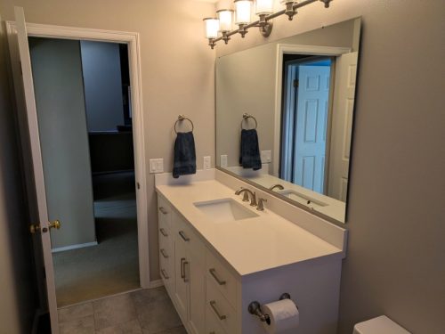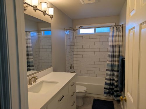 I’ve been asked why we remodeled this when we know we’re moving. It’s mostly so that we don’t have a yellow bathroom in our real estate listing. While our house is far from fancy/modern for this area, that bathroom was especially unusual. Hopefully this new bathroom will keep a few more people flipping through the pictures in our listing.