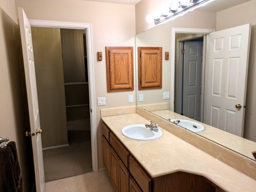 If you’ve been upstairs in our house, you’ve probably visited our pale yellow bathroom. Our main bathroom was originally yellow too, but we had that remodeled back in 2013. After living in this house for ~14 years and saying I was going to remodel our guest bathroom for about that long, we decided it was time to hire someone.