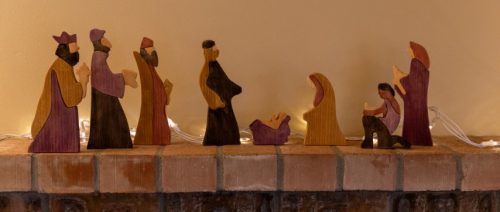 The piece she saved was an 8×8 that was maybe 15″ long. I finally landed on the idea of making a nativity set out of it and I based the design on a set that Mom always put up around our house while I was growing up.